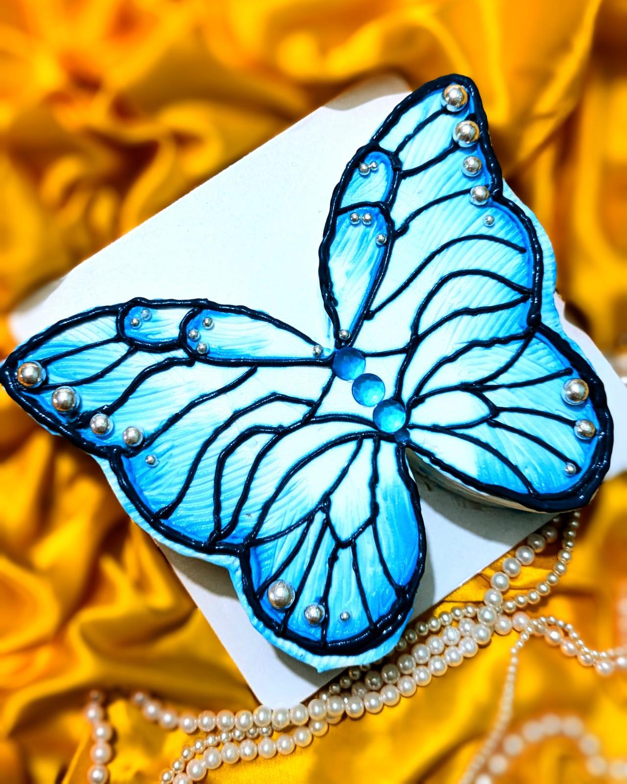 A dream in sugar and wings. This 1lb celebration cake features a soft pastel base adorned with handcrafted edible butterflies that appear to be taking flight. Accented with delicate sugar pearls and light floral piping, it’s a perfect centerpiece for a fairy-tale birthday.