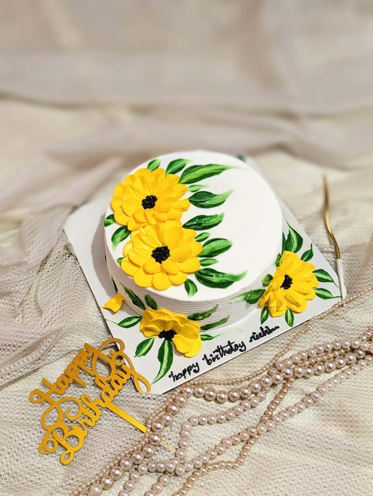 Made with soft, fluffy sponge layers and finished with smooth, creamy frosting, it offers a delightful taste in every bite. The eye-catching sunflower design makes it a perfect centerpiece, adding warmth and happiness to your special moments.